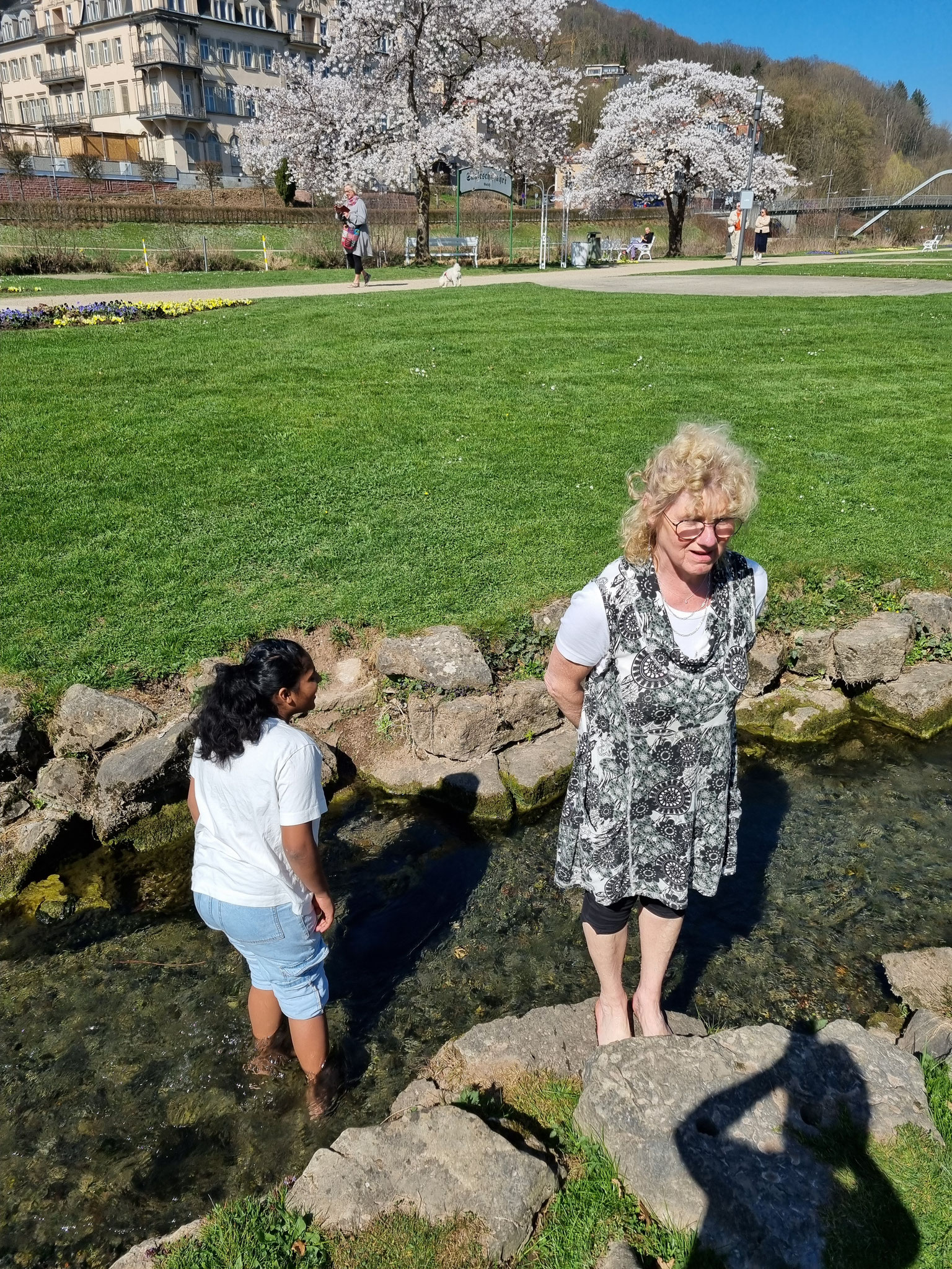 Aber wir durften barfuß in den Bach 😎🦶🏻🏞️💦 und Steine werfen 🪨🤏🏻