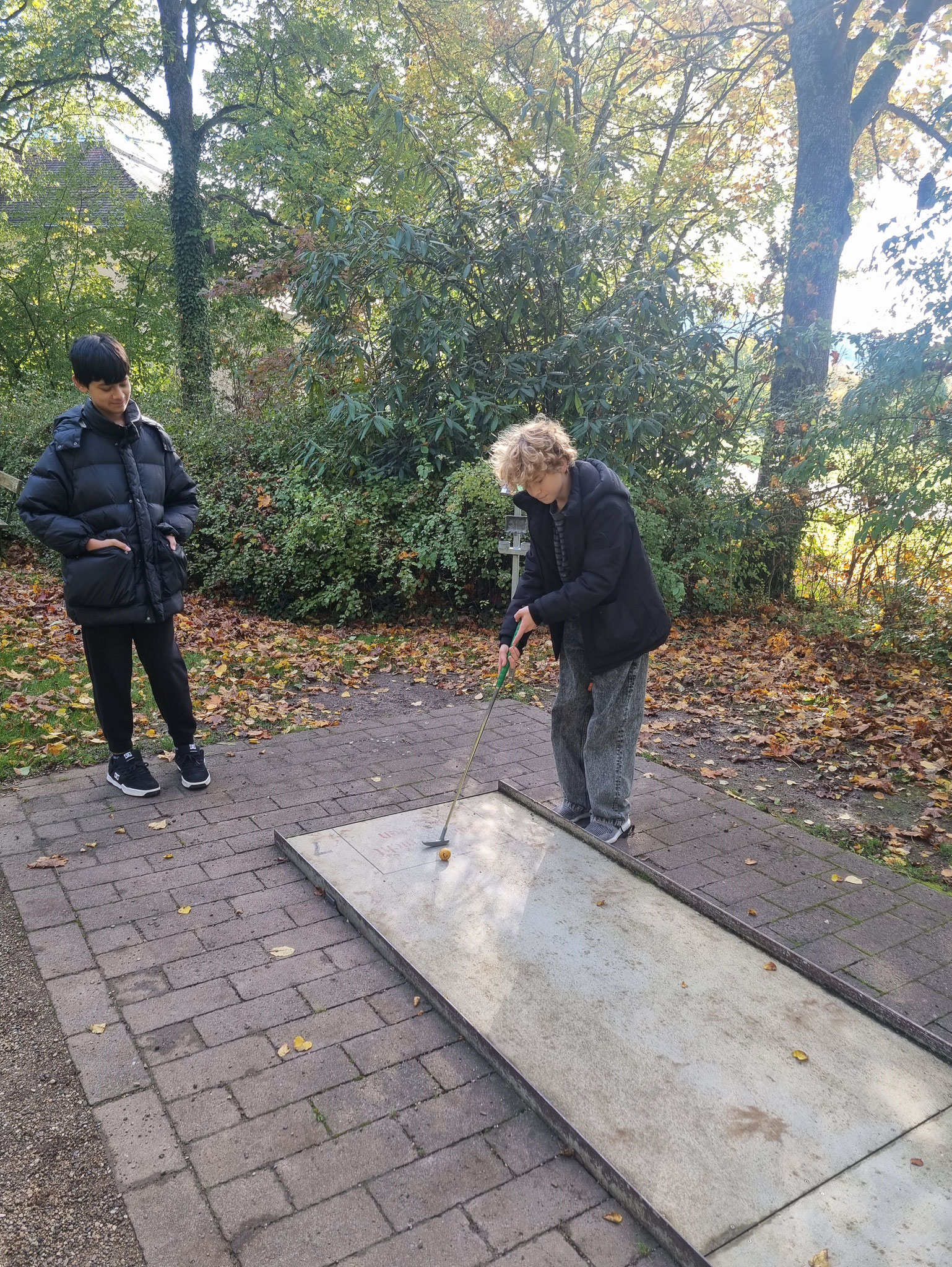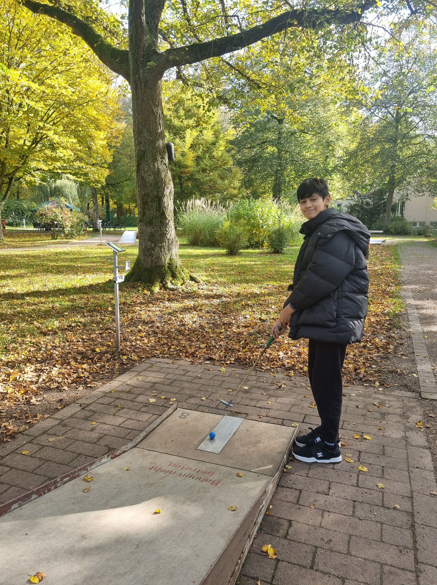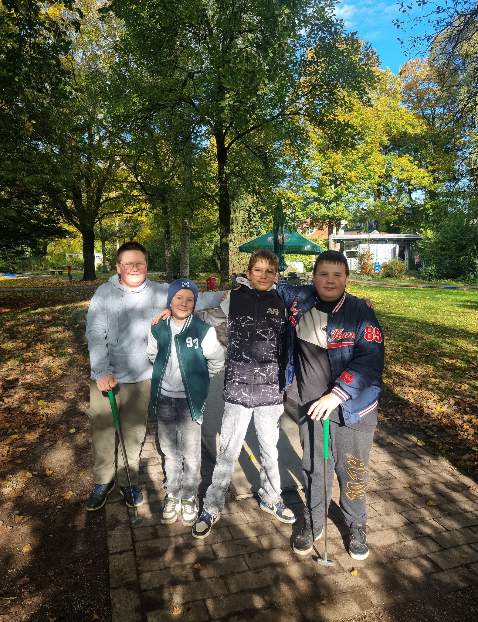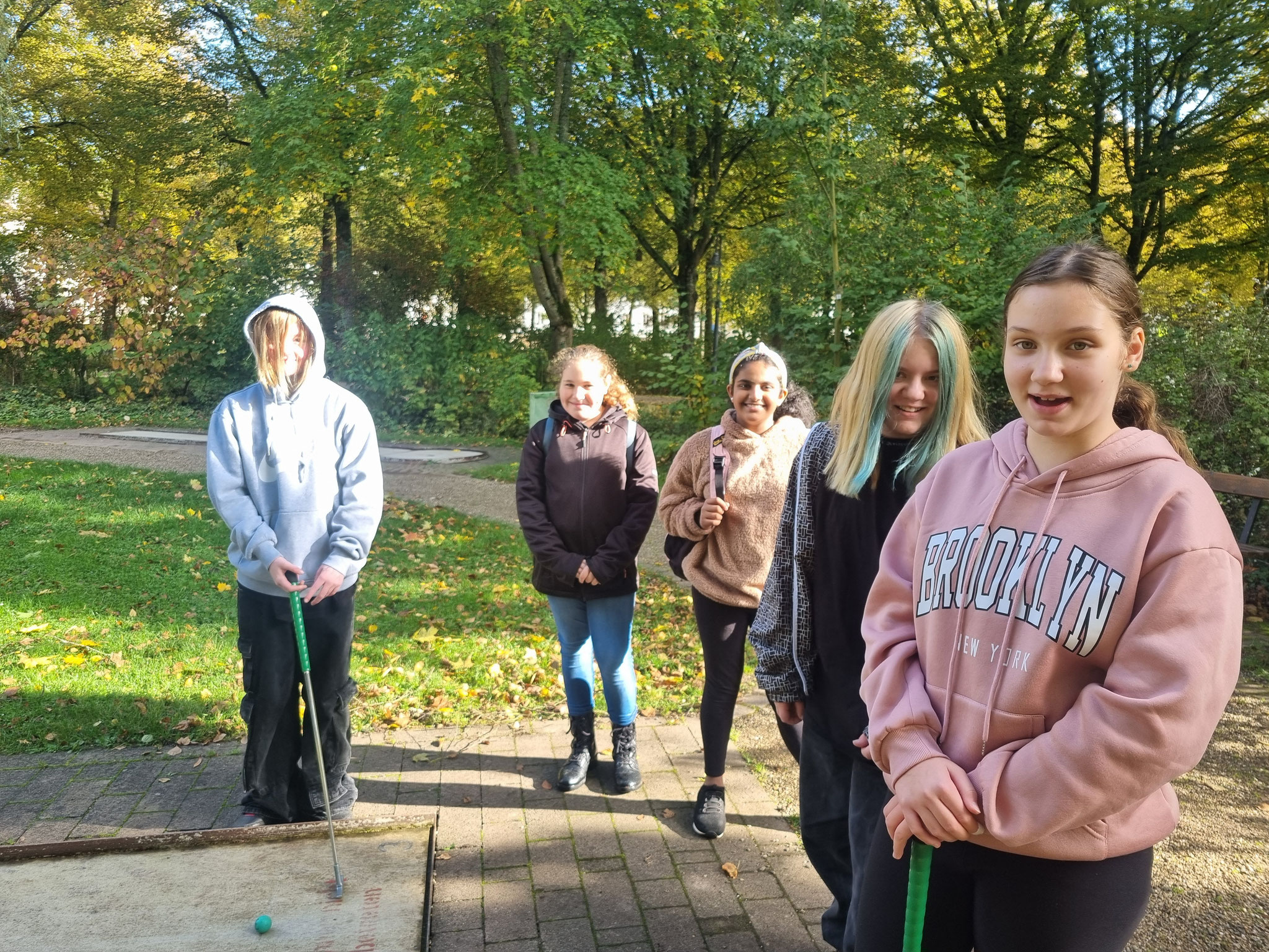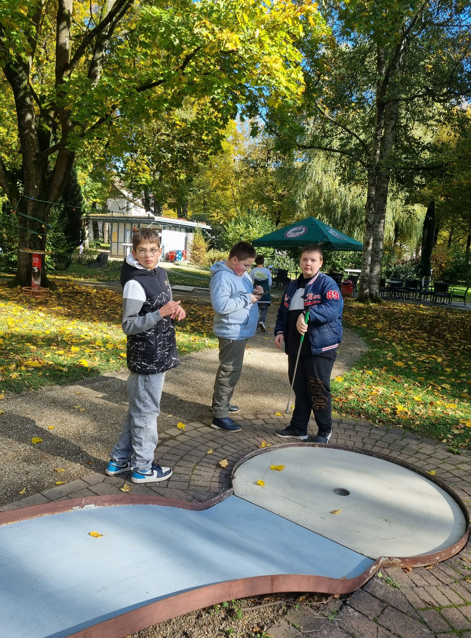 Bei herrlichstem Herbst-Sonnenwetter begab sich die Klasse 5a am 16.10.24 zur Bad Bockleter Minigolfanlage, wo wir bereits von Frau Humbek empfangen wurden.