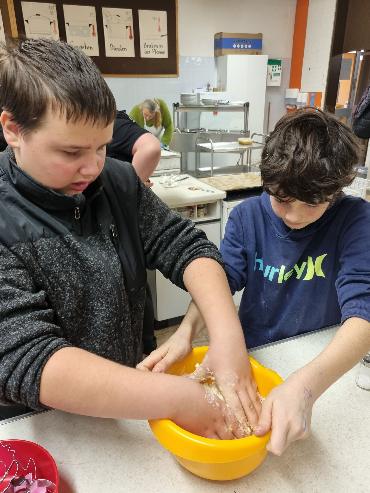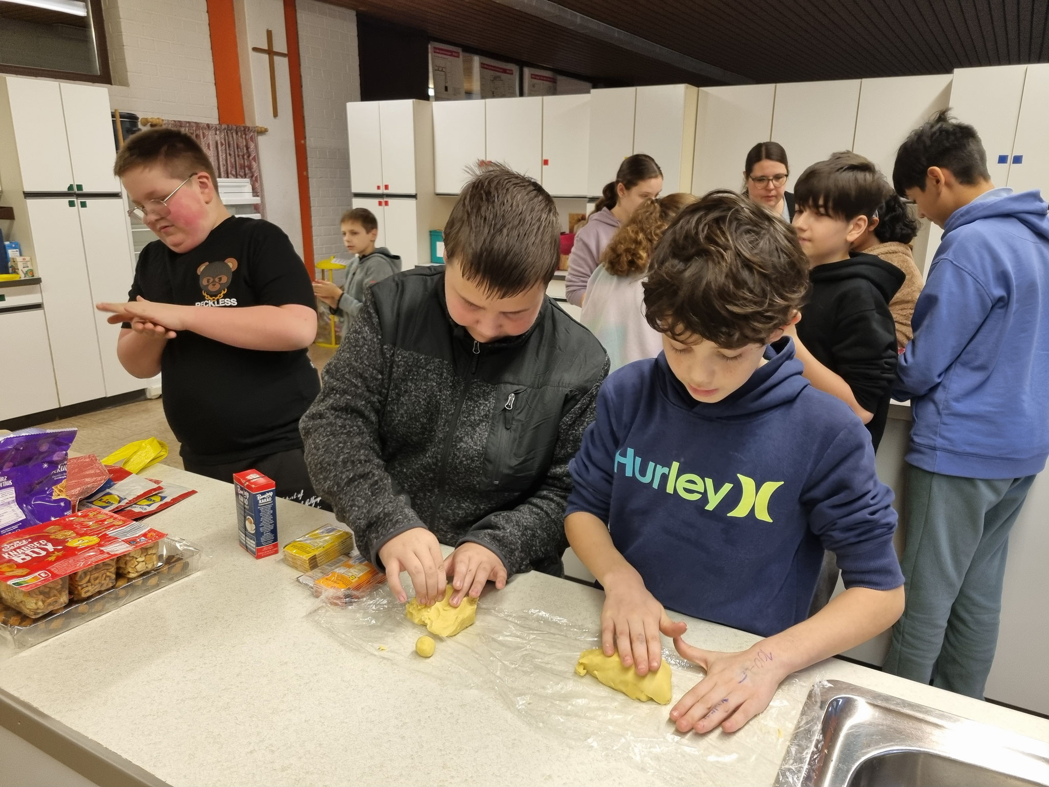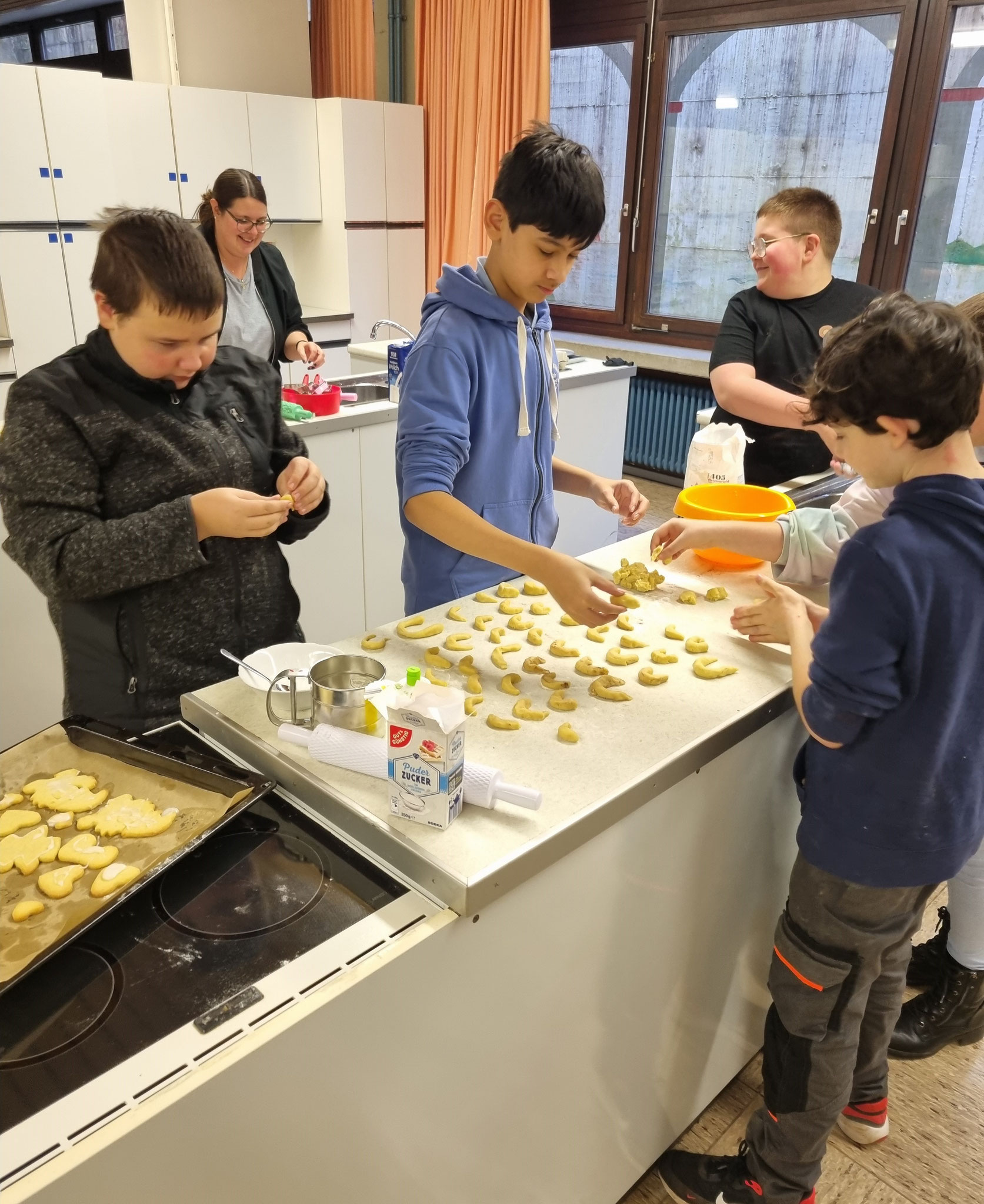 Am 19.12.24 versammelten sich etliche SchülerInnen zum Plätzchenbacken in der Bad Bockleter Schulküche.