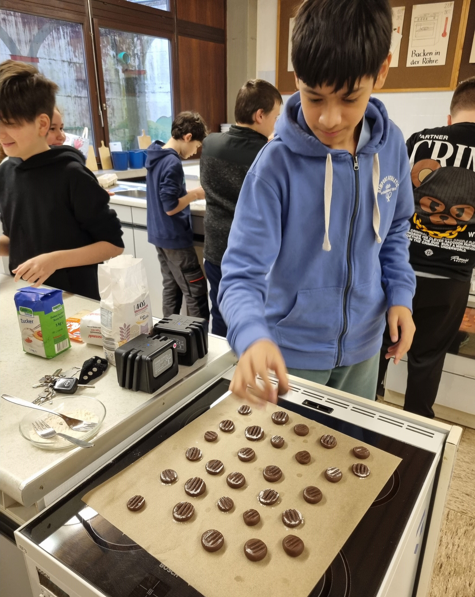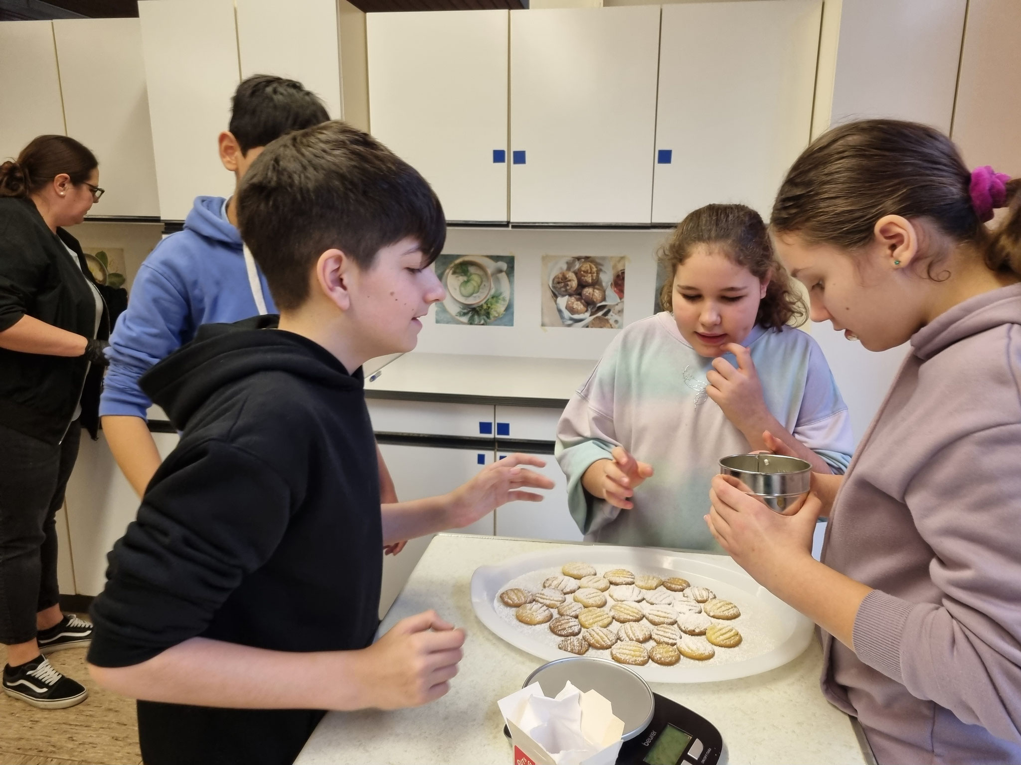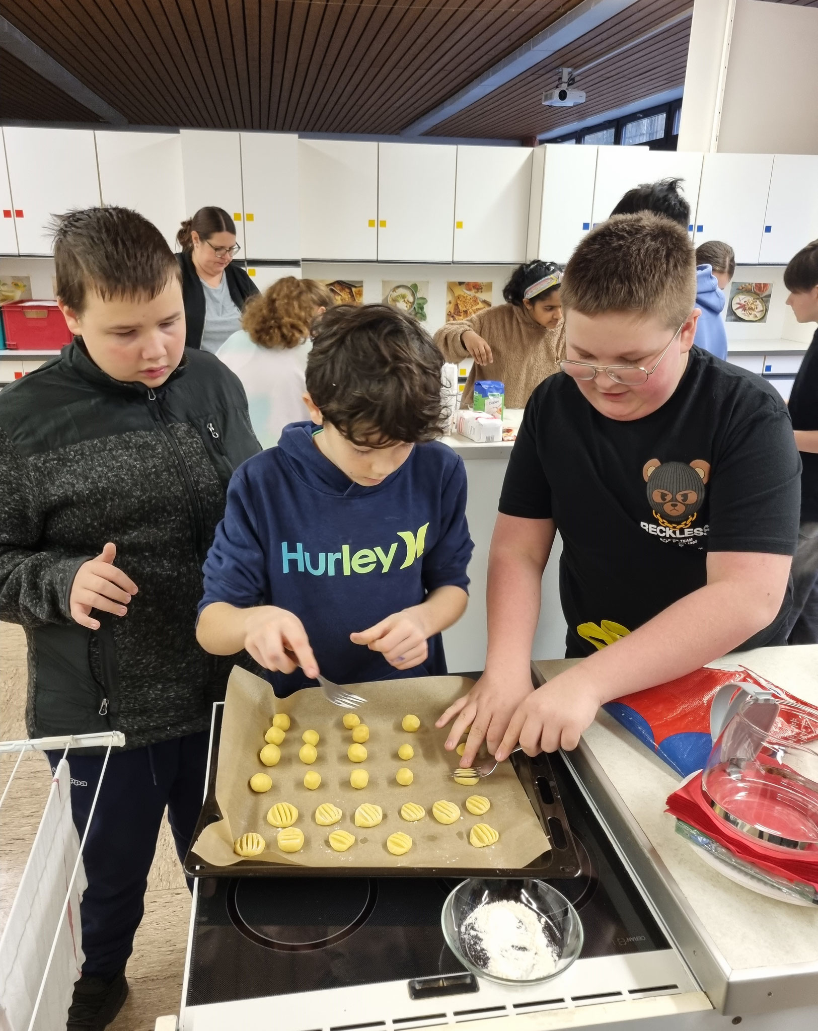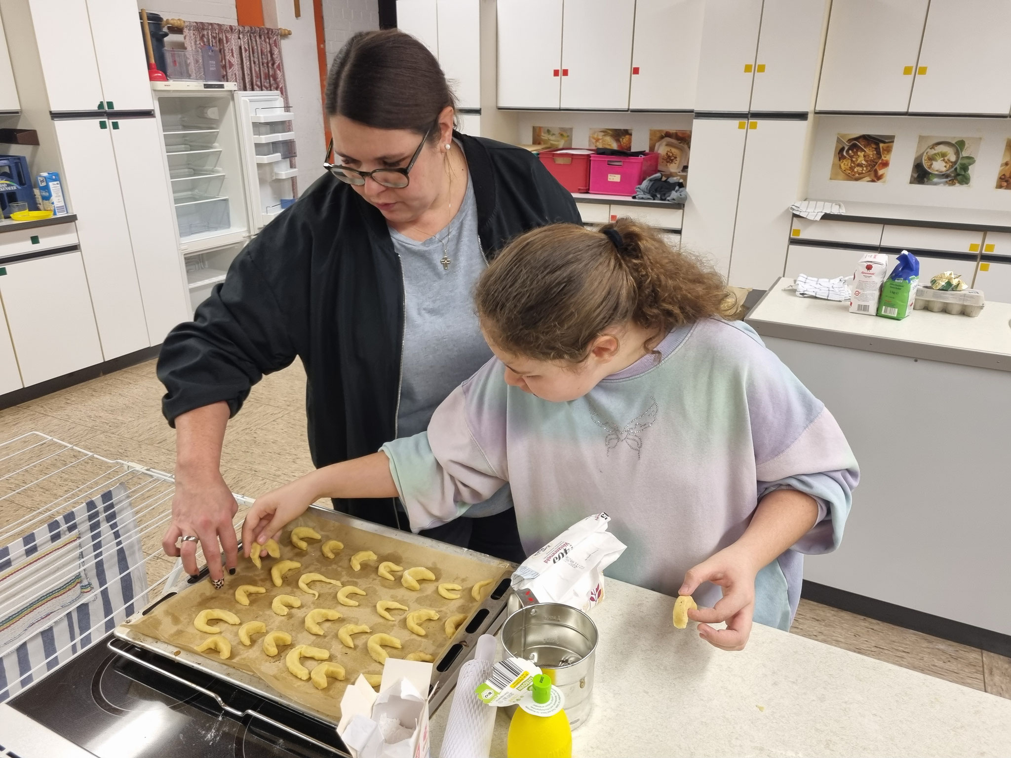 Am 19.12.24 versammelten sich etliche SchülerInnen zum Plätzchenbacken in der Bad Bockleter Schulküche.