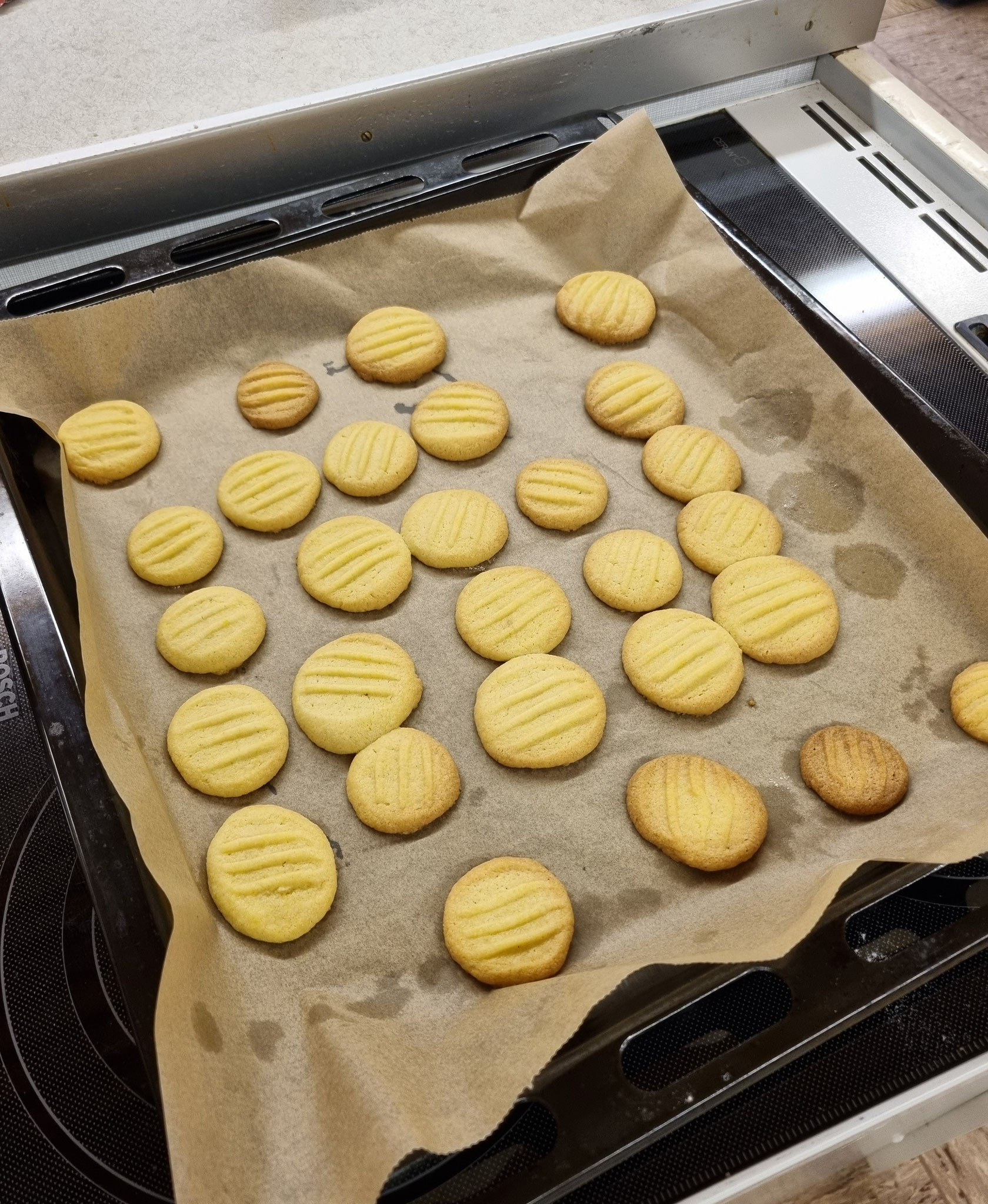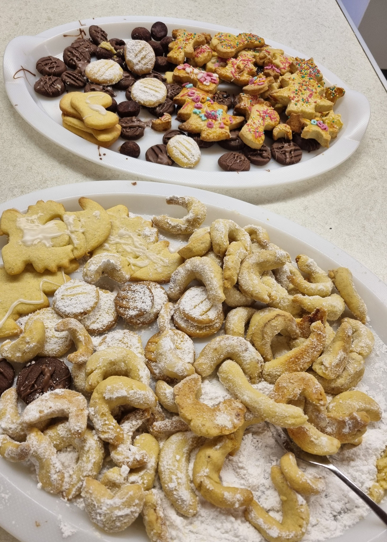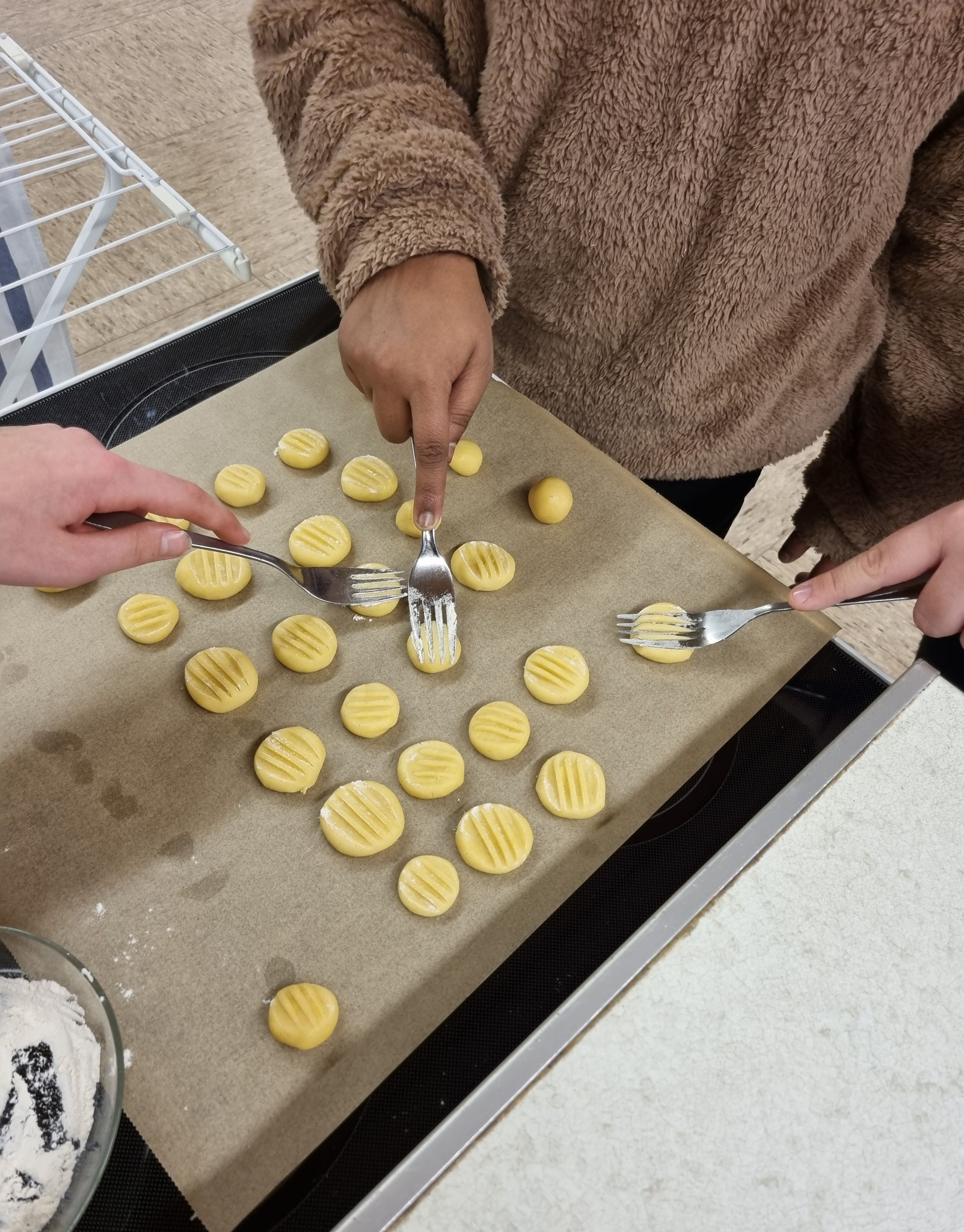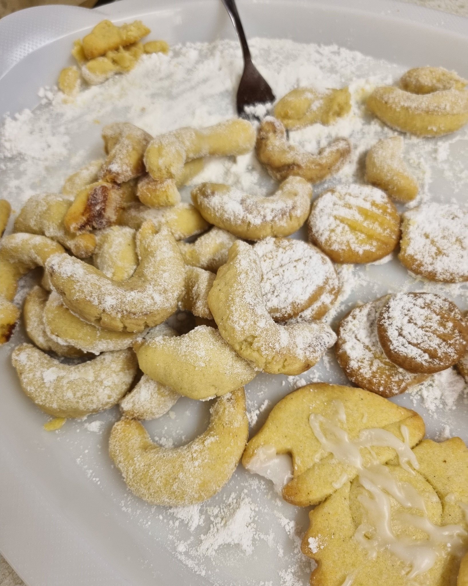 Zunächst brachten wir die Puddingplätzchen mit der Gabel in Form, ehe es an die Butterplätzchen und anschließend an die Vanillekipferl ging.