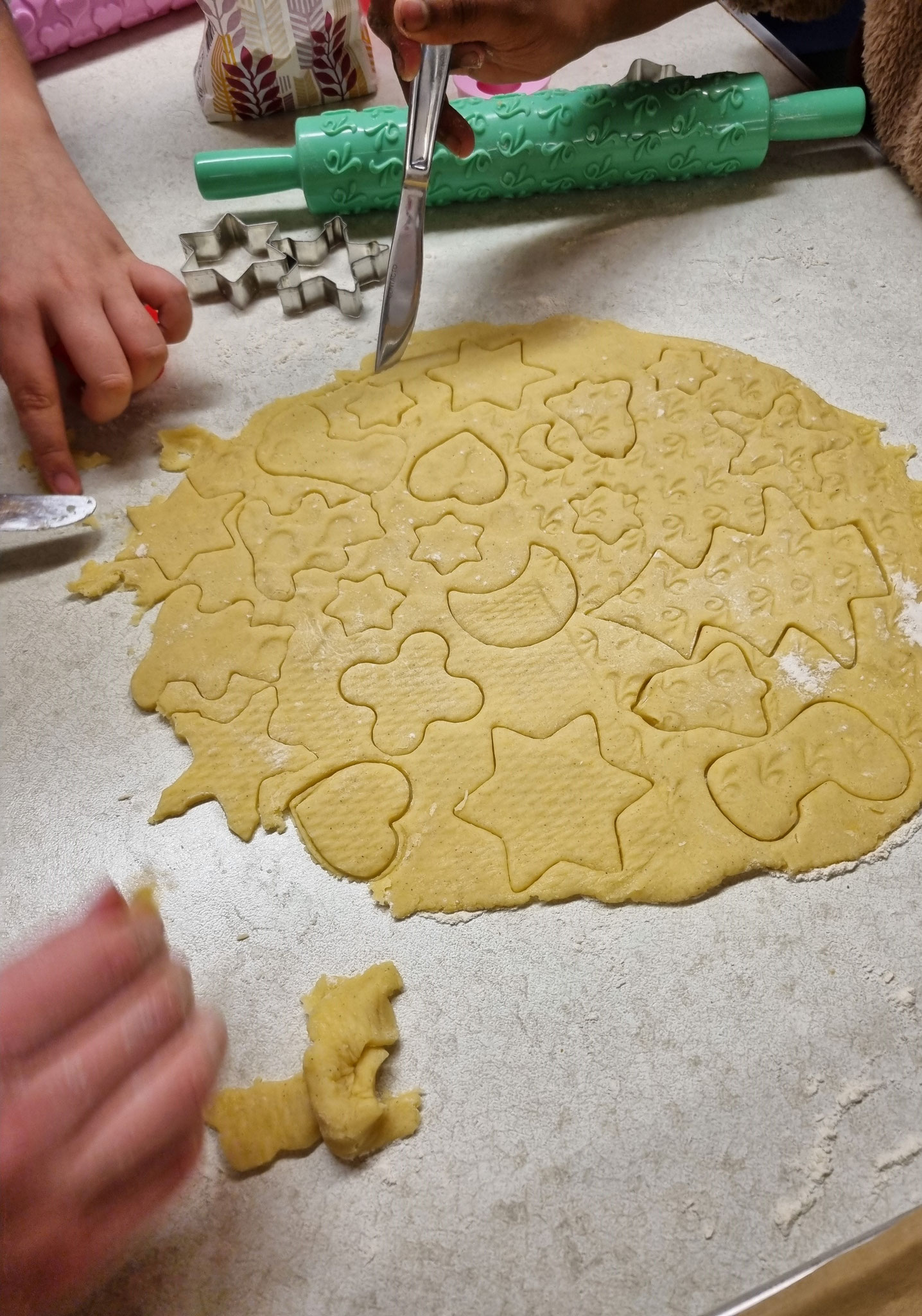 Alle Zutaten wurden von den Kids mitgebracht, abgewogen, geknetet, ausgestochen, dekoriert und natürlich verspeist.
